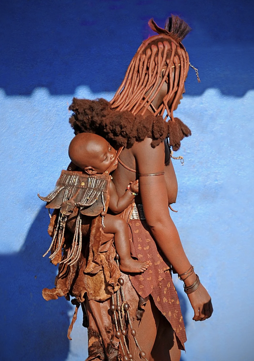 Himba woman with child. Image from Peter Schnurman via Trip Down Memory Lane blog.